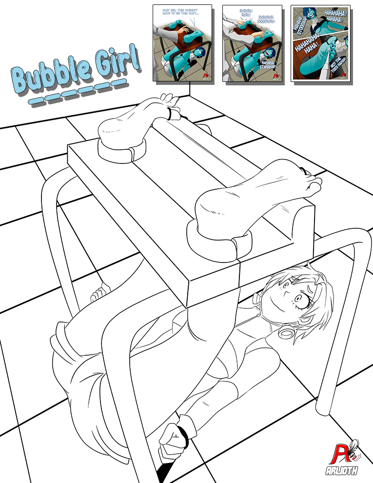 Bubble Girl from My Hero Academia series is trapped in stock, with her feet completely vulnerable, ready to be tickled by Nighteye!...